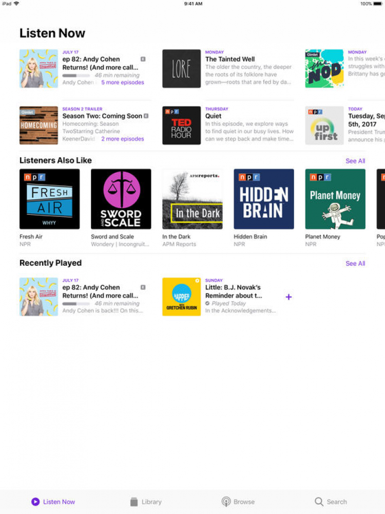 - смотрите и слушайте аудио- и видеоподкасты, собранные в единой программе;