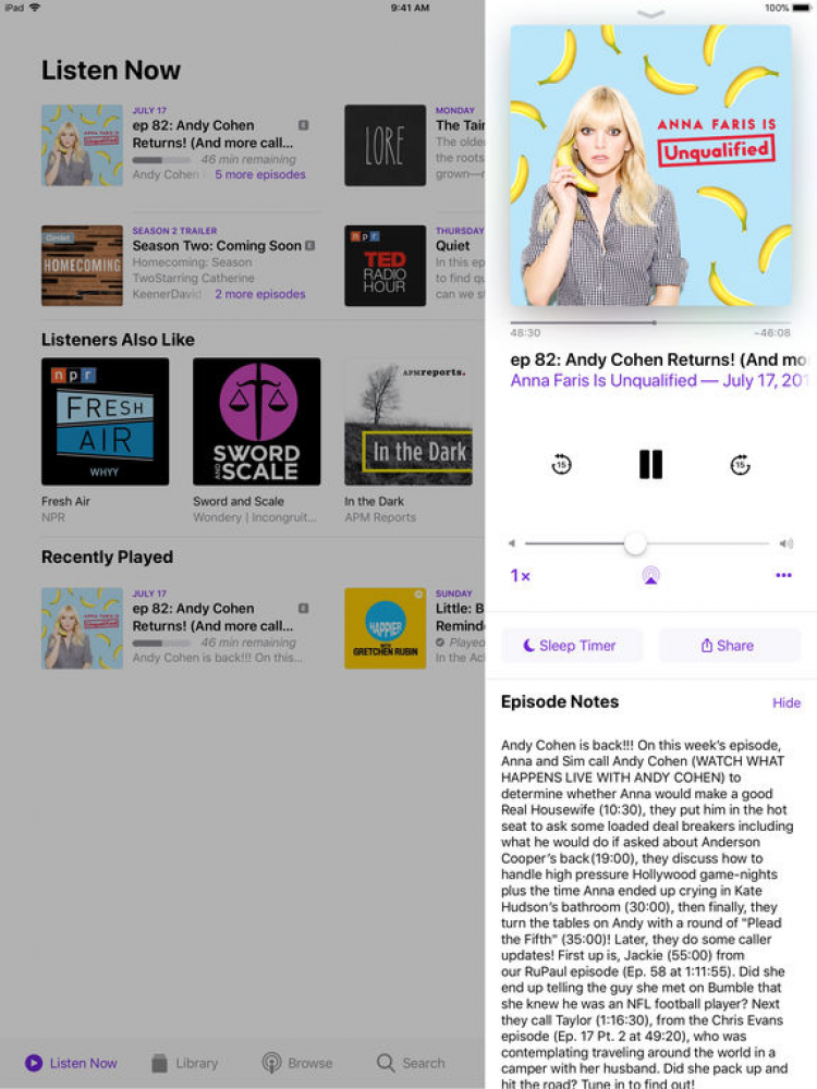 - используйте Таймер сна для автоматического выключения воспроизведения подкаста при прослушивании в кровати;