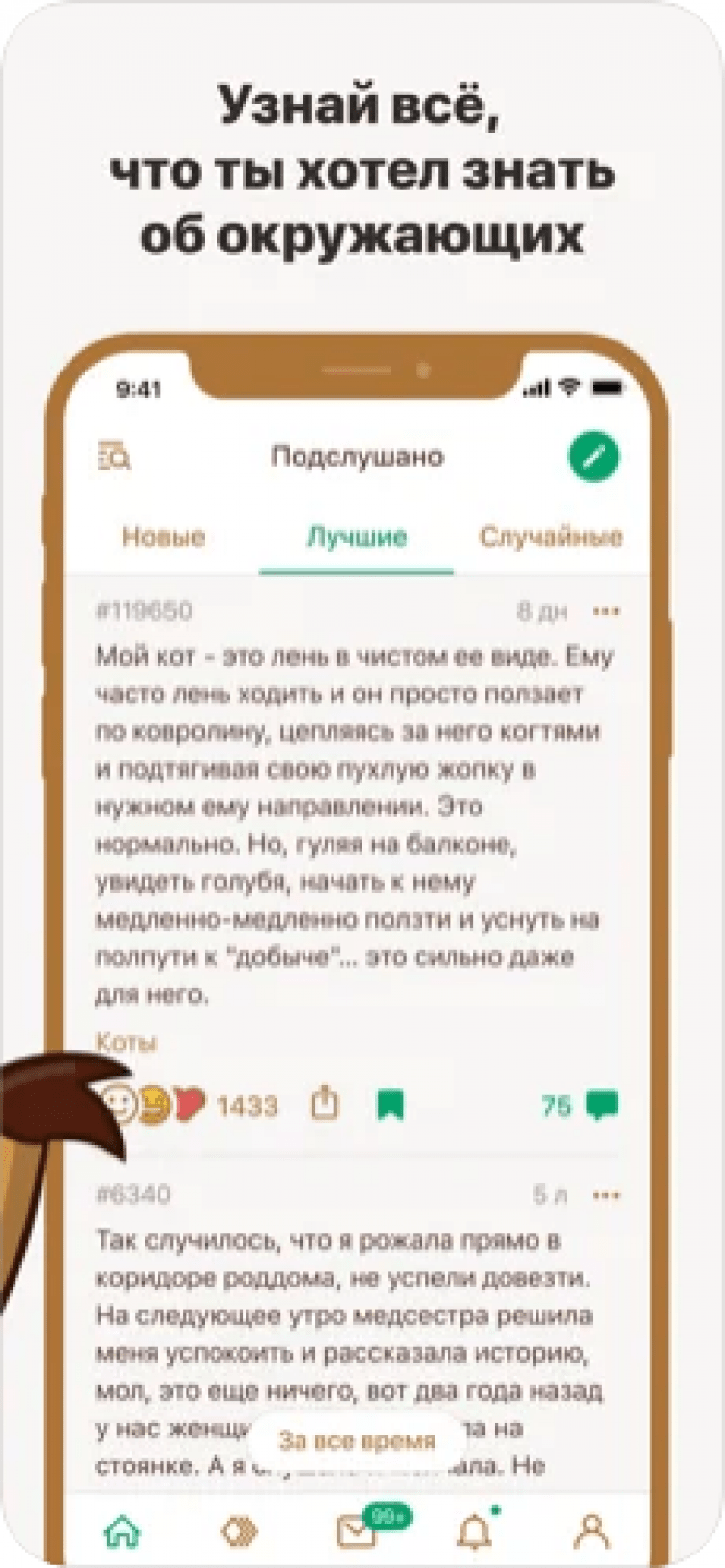 - чтение секретов и историй реальных пользователей;