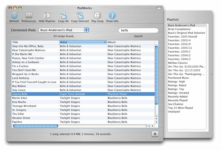 PodWorks Программа, позволяющая передавать музыку с iPhone/iPod на компьютер.