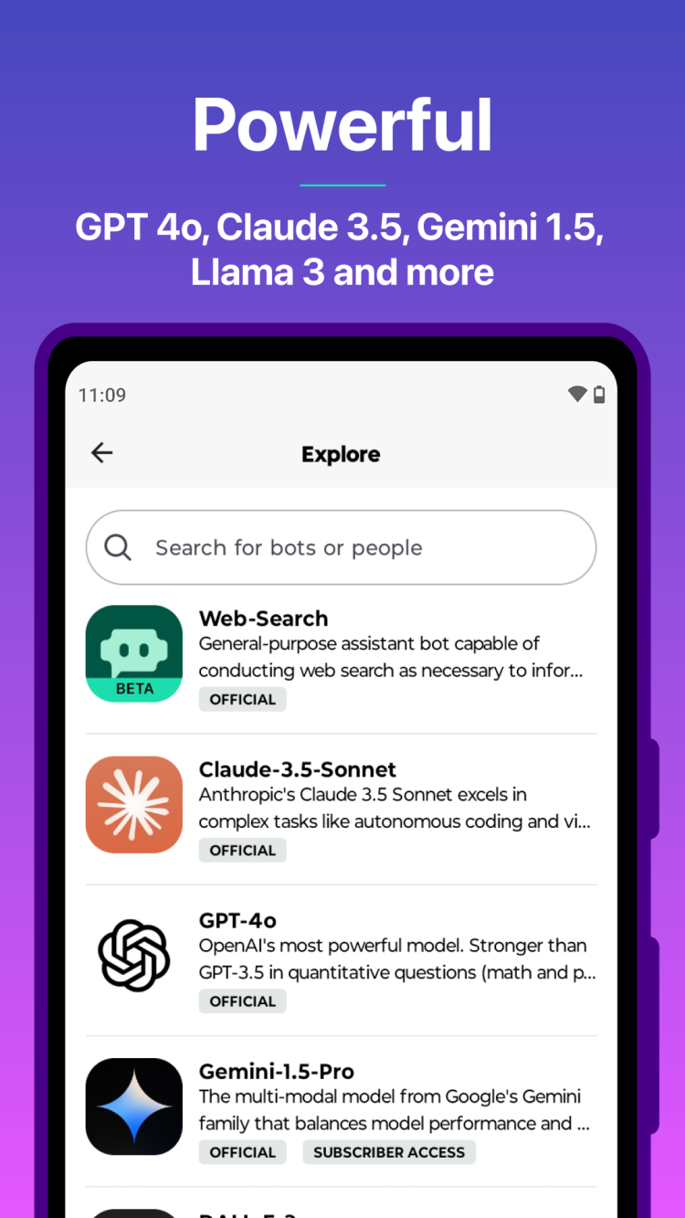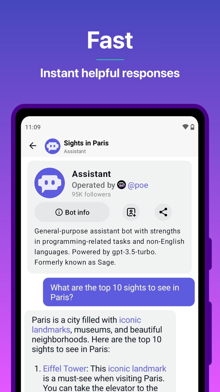 Poe — это приложение на базе искусственного интеллекта, которое обеспечивает увлекательное общение. Получайте молниеносные ответы от умного чат-бота, который может не только отвечать на ваши вопросы, но и генерировать высококачественный контент.