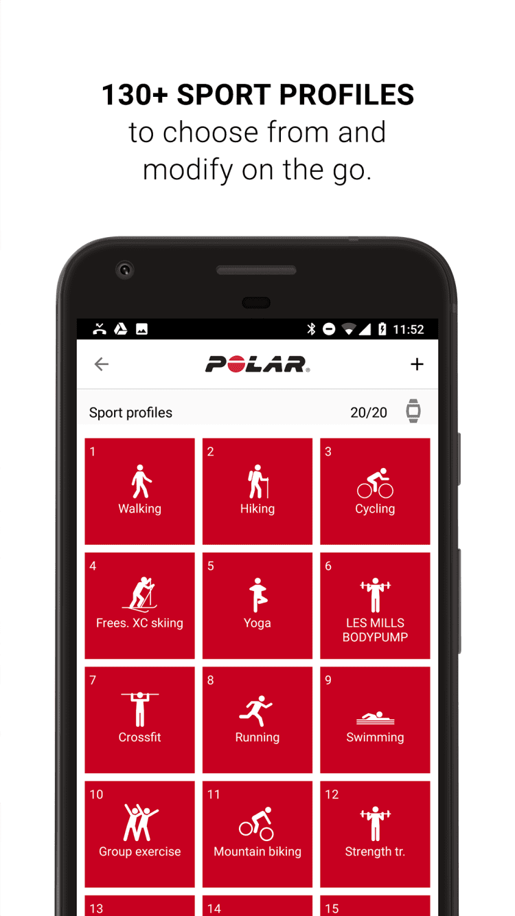 - профили для более 100 видов спортивной активности;