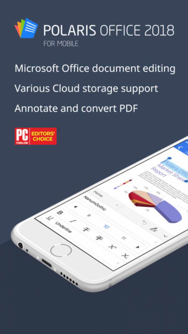 Мощный офисный пакет для устройств на iOS, обладающий обширными возможностями работы с документами, быстрым доступок к вложениям электронной почты, файловым менеджером, интеграцией с облаком, а так же многое другое. Polaris Office 2016 поддерживает большинство форматов офисных файлов, таких как doc, docx, xls, xlsx, ppt, pptx, pdf, txt, hwp и проч, а так же позволяет быстро обмениваться документами с компьютером при помощи компьютерного агента, либо облачных хранилищ, таких как OneDrive, Dropbox, Box, WebDAV и проч.