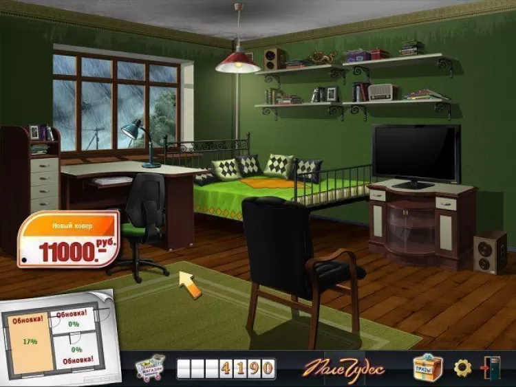 Будьте проницательны, проявите свою эрудицию и успешно разгадайте все замысловатые вопросы ведущего, заработайте как можно больше очков и на заслуженное поощрение обустройте свое жилье. Смените письменный стол, купите холодильник и музыкальный центр, переклейте обои. А если вдруг выигрыша не хватит, непременно возвращайтесь на передачу за новыми призами. Насладитесь неповторимой атмосферой интеллектуального соревнования под великолепный саундтрэк!