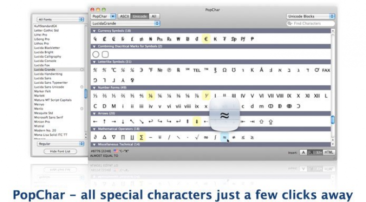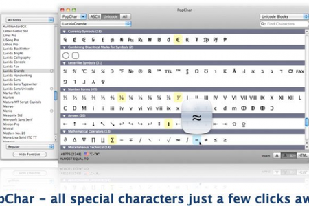PopChar Полезная программа, которая поможет вставлять в текст различные специальные символы. Для этого необходимо найти нужный символ в программе, щелкнуть на него и он автоматически появится в вашем тексте.
