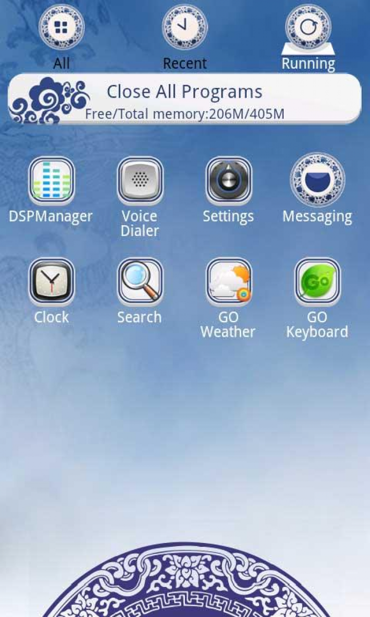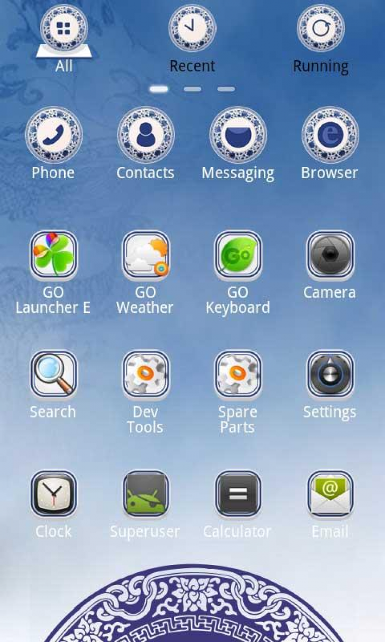 Porcelain Theme GO Launcher EX — голубая тема оформления для приложения GO Launcher EX, оформленная под фарфор с красивым узором.