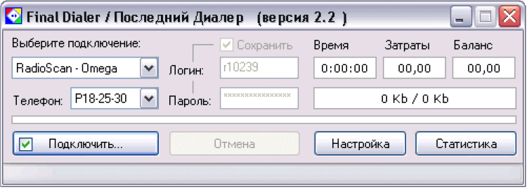 Последний Диалер / Final Dialer (версия 2.2) - это утилита для модемного соединения с Интернетом, учета времени, трафика и затрат в соответствии с тарифом провайдера.