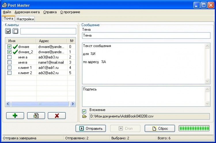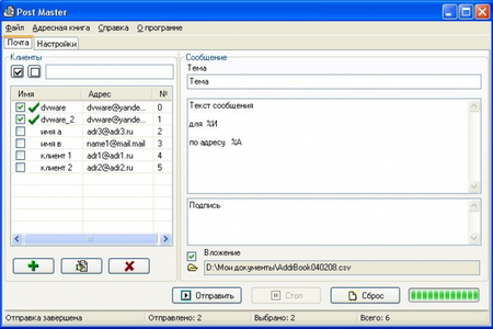 Post Master - это бесплатная для некоммерческого использования программа автоматизации рассылки электронной почты. Рекомендуется для рассылки прайсов и новостей вашим партнерам. Не предназначена для массовой рассылки.