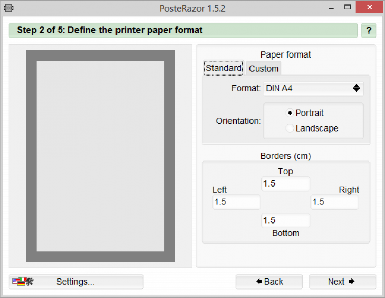 Данная программа помогает разрезать изображение на несколько частей, из которых после печати можно собрать цельный постер. Каждая часть постера сохраняется в отдельный PDF документ. В процессе создания постера PosteRazor позволяет выбрать его формат и размер, размер отступов и ряд других параметров.