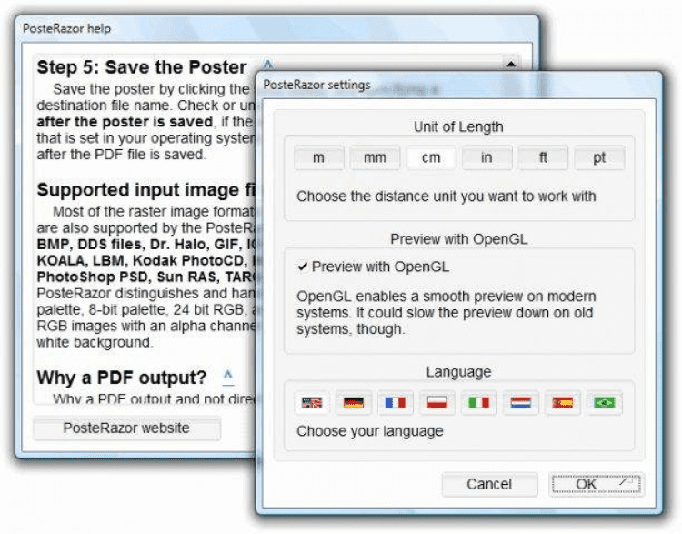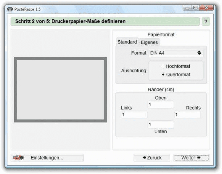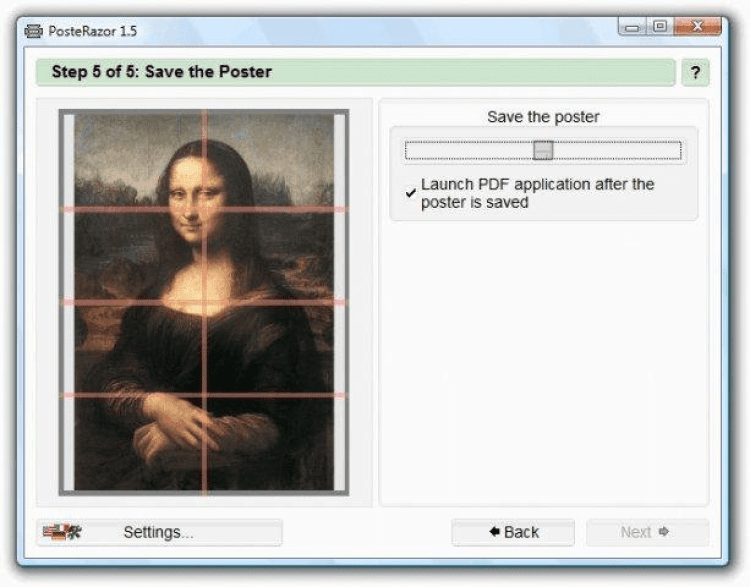PosteRazor Portable - это портативная версия программы, которая позволяет создавать постеры из любых растровых изображений. Программа обладает удобным пошаговым мастером, который упрощает создание постера. PosteRazor помогает разрезать изображение на несколько частей, из которых после печати можно собрать цельный постер. Каждая часть постера сохраняется в отдельный PDF документ. В процессе создания постера PosteRazor позволяет выбрать его формат и размер, размер отступов и ряд других параметров.