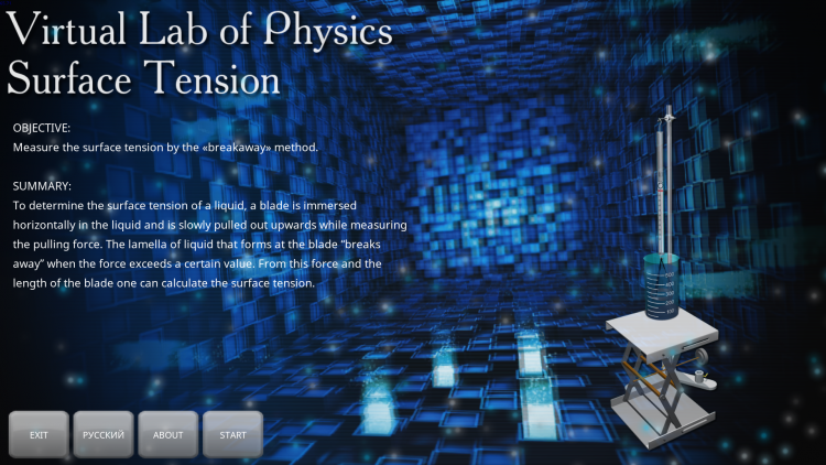 Поверхностное натяжение 3D виртуальная лабораторная работа по физике (раздел: Механика).