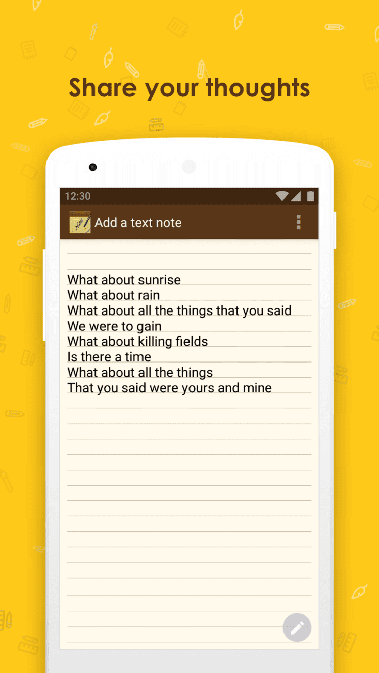 Выберите любой цвет, которым будете писать, так же у вас есть возможность поделиться заметками со своими друзьями или близкими. Любите оставлять много заметок и не знаете, где та, которая вам нужна? Ваш новый блокнот найдет её с легкостью.