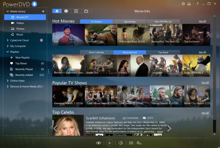 PowerDVD - универсальный плеер для Windows. Позволяет воспроизводить DVD и Blu-ray диски, а также все популярные аудио и видео форматы.