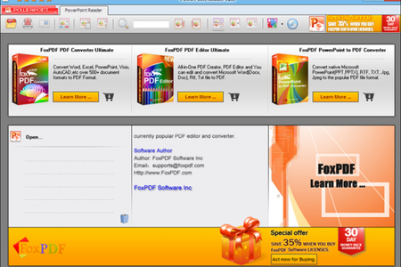 PowerPoint Reader - это программа, позволяющая открывать, просматривать и печатать электронные презентации в формате PPT и PPTX, а так же документы RTF и простые текстовые файлы. Не требует установки оригинального ПО от Microsoft. Умеет отправлять документы по электронной почте.