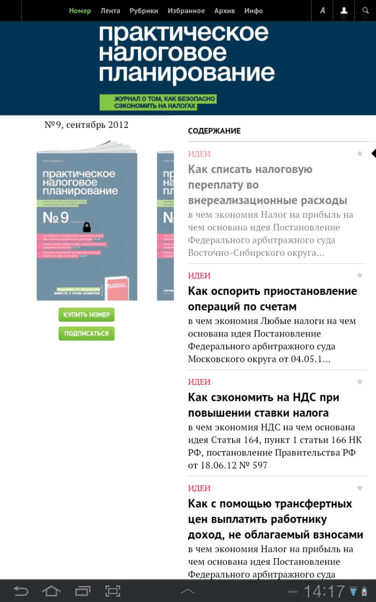 Практич. налог. планирование Единственное издание, целиком посвященное тому, как снизить налоги. Ежемесячно в свежем номере – множество решений по оптимизации налогообложения. Безопасность каждого способа снижения налоговой нагрузки оценивается чиновниками и экспертами. Журнал оперативно публикует информацию об изменениях в законодательстве и новой арбитражной практике, влияющих на безопасность разных методов сокращения налогов.