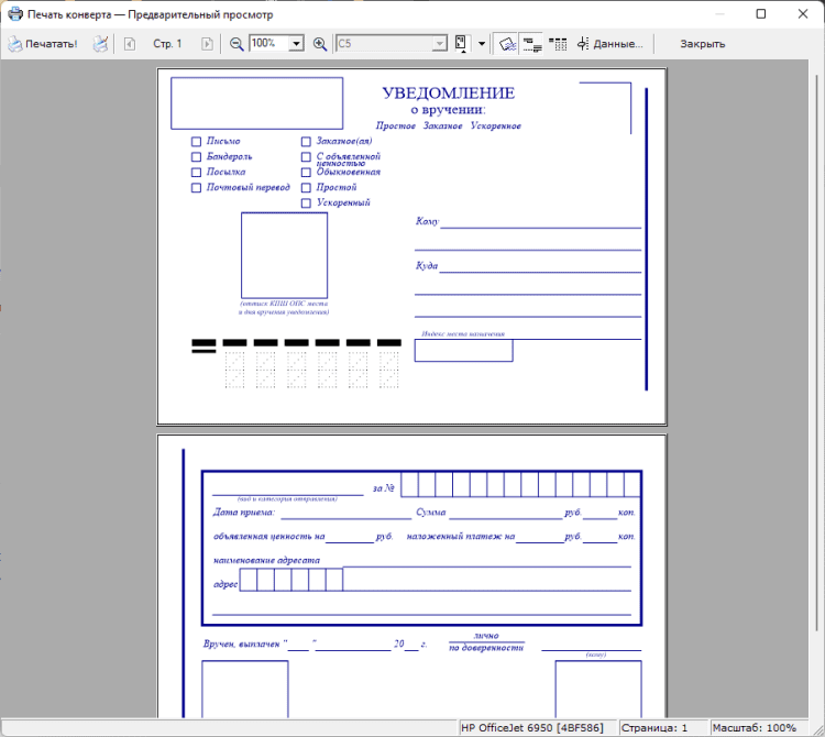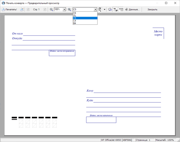 PrintEnvelope - это программа для печати почтовых конвертов и уведомлений.