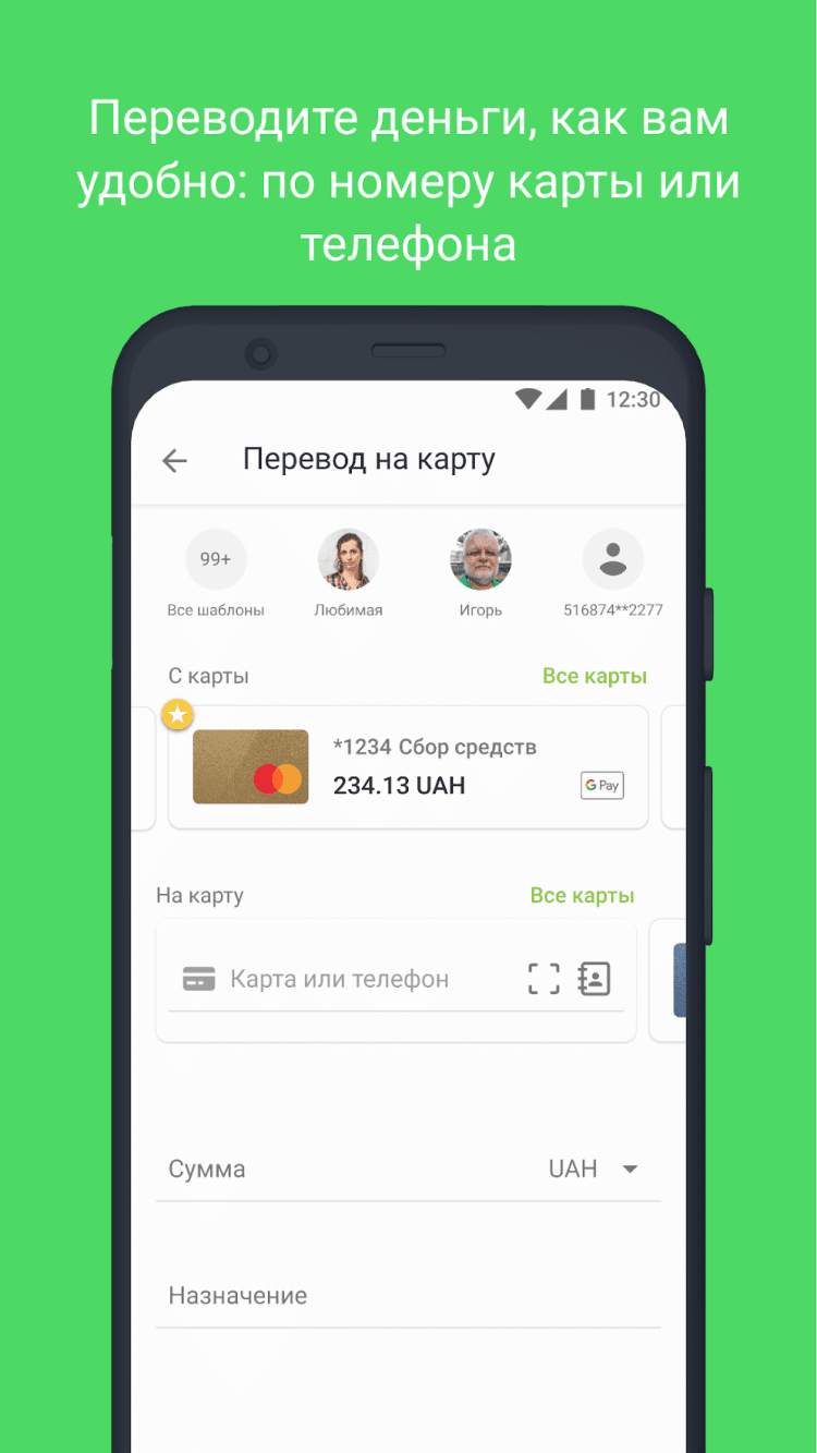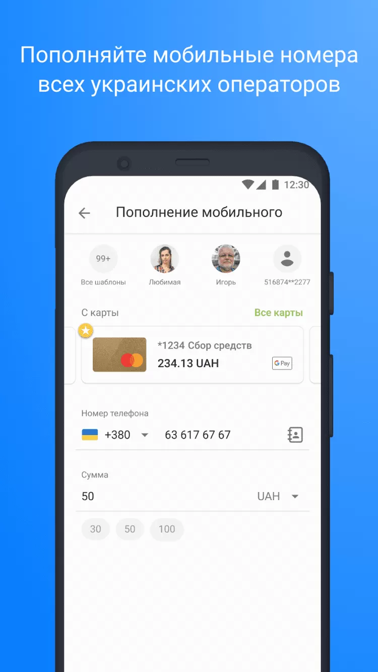 Кроме того, вы сможете с легкостью осуществлять всевозможные платежи. Программа позволит пополнить счет мобильного телефона в более, чем 140 странах мира, оплатить коммунальные услуги, платить за за Viasat, Vega, Воля-Кабель, Киевстар, Укртелеком, принимать платежи с помощью мобильного терминала, приобретать ж\д, автобусные и авиабилеты, а также создать шаблоны для регулярных платежей. Кроме того, вы сможете отправлять переводы PrivatMoney и WesternUnion, а также пополнять аккаунты в Steam, а также таких онлайн-играх, как Warface, My Land и многих других.
