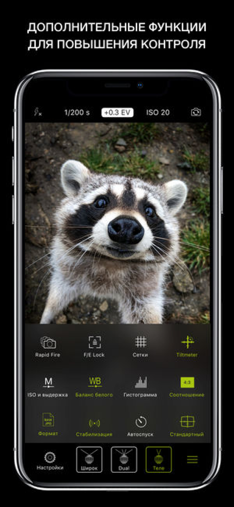 Получите доступ к полному набору всевозможных инструментов, которые помогут раскрыть весь потенциал камеры вашего iPhone, при помощи этой программы.