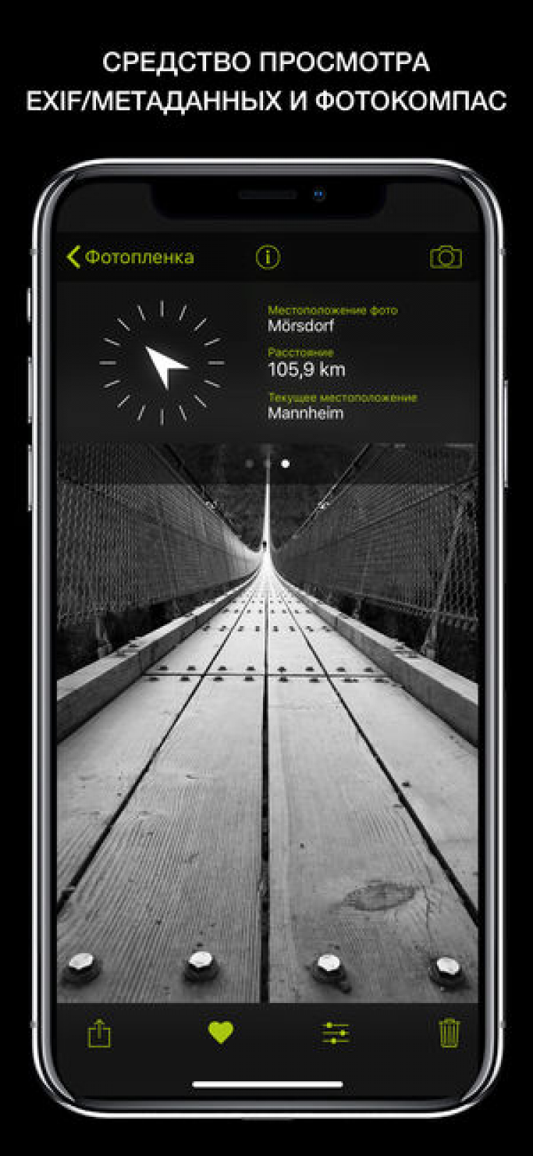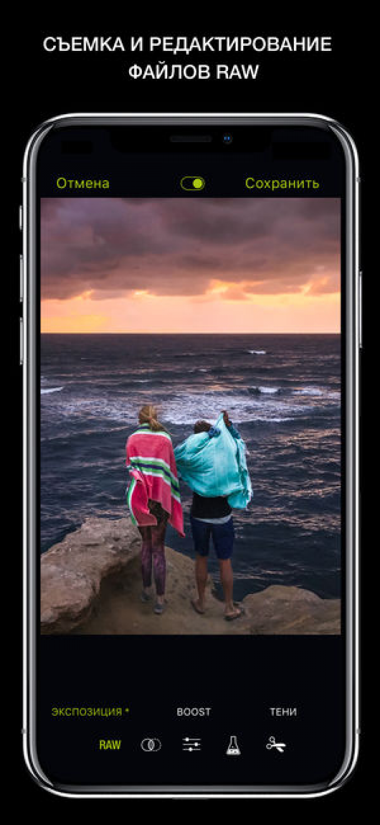 - Поддержка форматов JPEG, RAW (DNG) на устройствах iPhone 6 S и новее, TIFF и HEIF на iPhone 7 и новее;