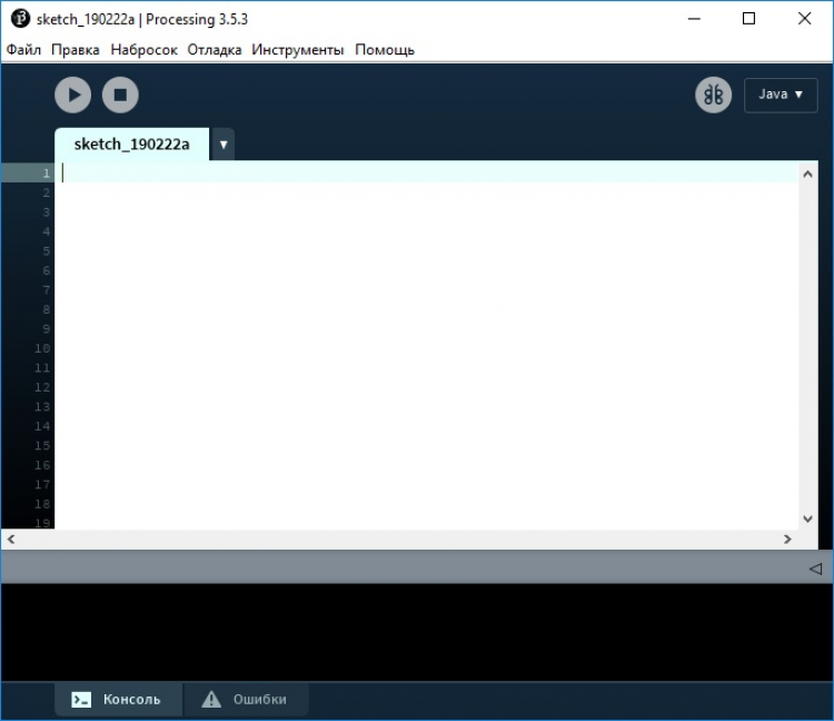 В главном окне программы располагаются все необходимые элементы: панели инструментов, текстовый редактор, вкладки проекта и консоль. Все основные функции и инструменты всегда будут у вас под рукой, что позволит сделать работу над программами, которые в языке Processing именуются скетчами, ещё удобнее. А завершив работу над проектами, вы сможете запустить исполнение кода и начать взаимодействие со своим творением нажатием всего одной кнопки.