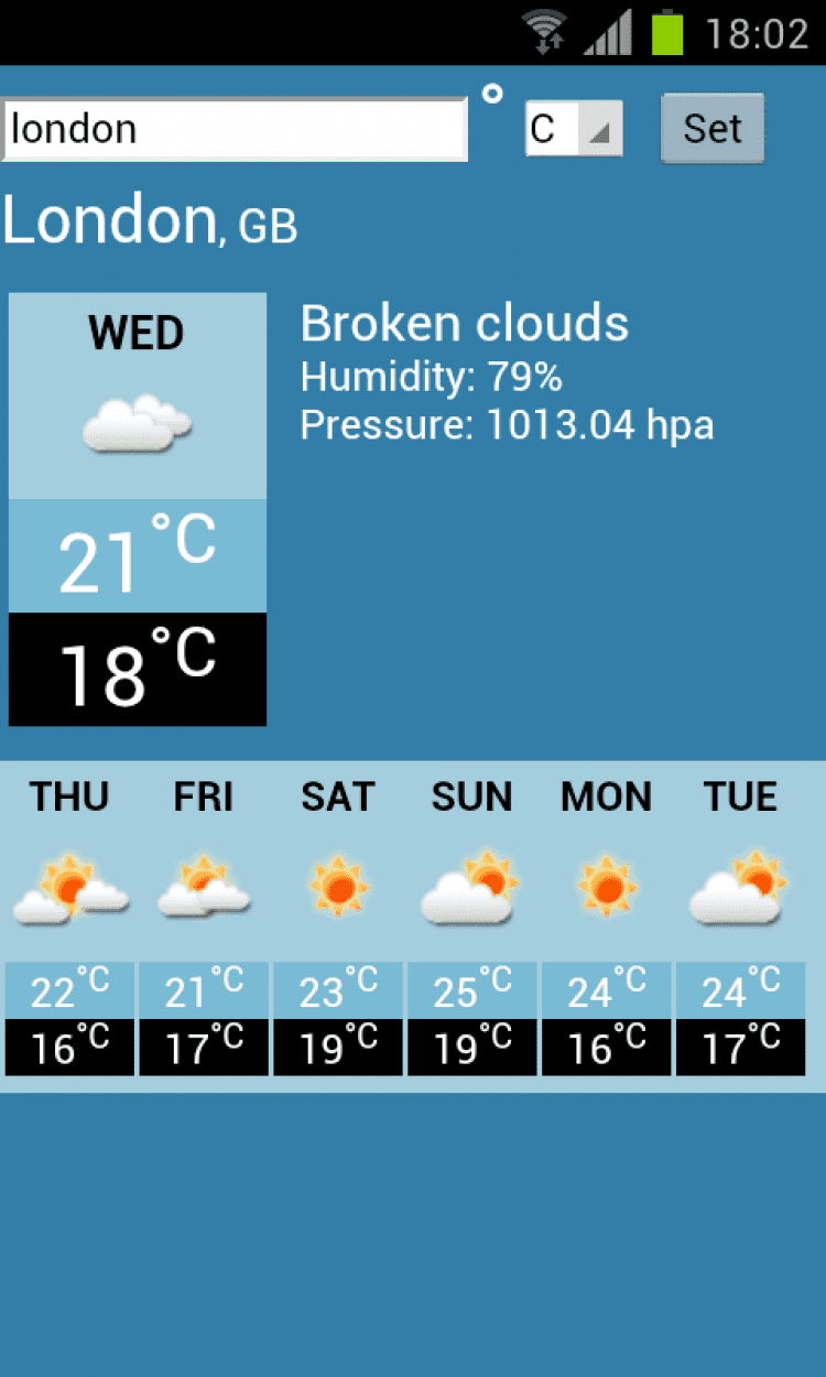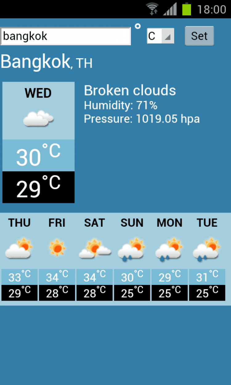 Прогноз погоды от ExpertiseNetComs на экране вашего мобильного устройства с возможностью еженедельного или ежедневного отображения прогноза. Вы можете просматривать погоду на 7 дней вперед. Скачайте Прогноз погоды для вашего телефона на базе Android бесплатно с goida-soft.ru