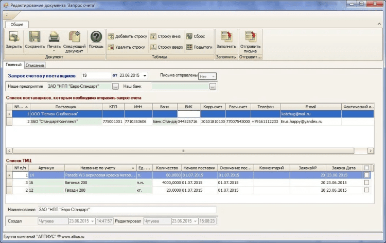 - рассылать по электронной почте письма поставщикам с запросом цен;
