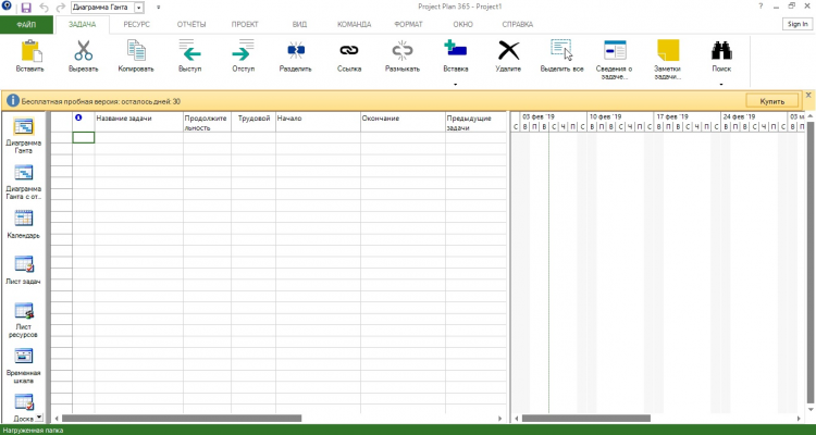 Перед вами trial-версия программы. После её установки, вы получите доступ ко всем функциям Project Plan 365 на 30 дней. После окончания пробного периода, необходимо приобрести полную версию программы.