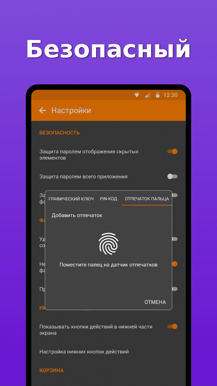 - защита доступав галерею по PIN_коду, графическому ключу или отпечатку пальца;