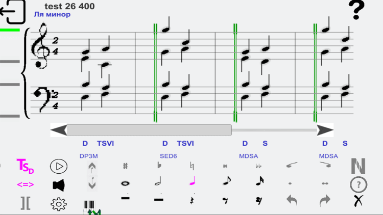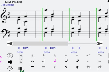 - заносить полифонические произведения (до 3-х голосов) с контролем правильности (экспериментально до запуска раздела "Полифония".