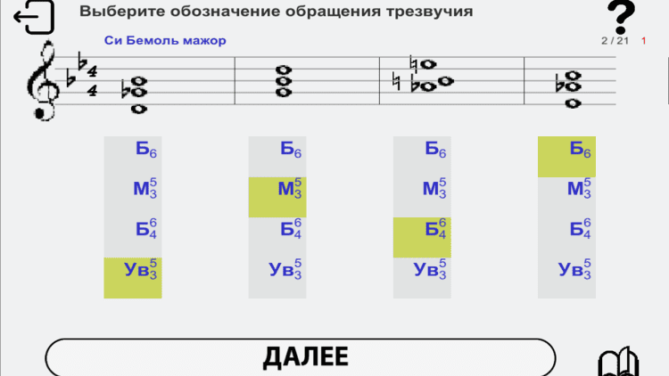 - одноголосные: 14 уровней > 60 диктантов в случайных тональностях с разными инструментами,