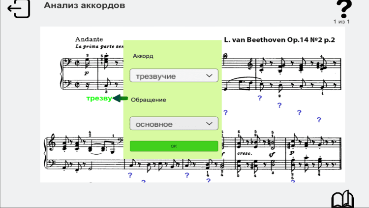 - раздел "Гармония" по изучению правил гармонии (полностью первая часть, включая упражнения по гармонизации, анализ и упражнения на midi клавиатуре);
