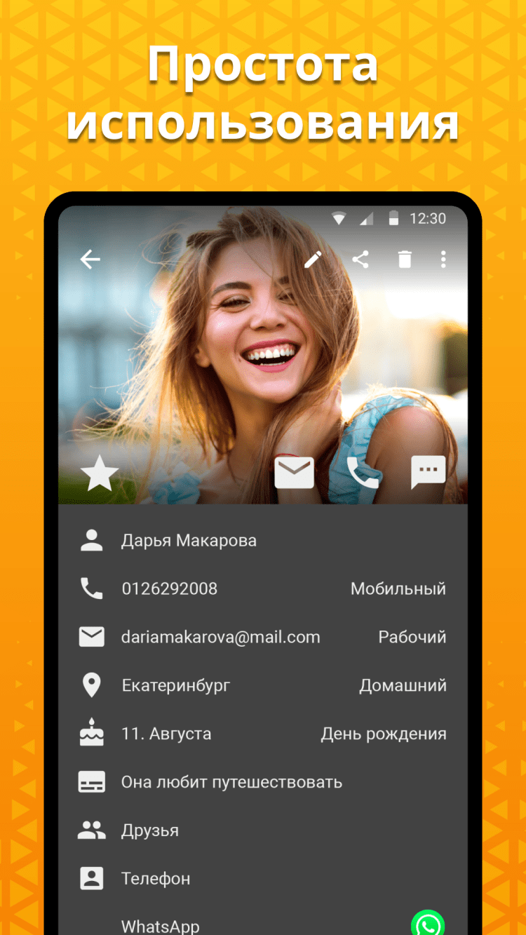 - удобное редактирование данных контактов;