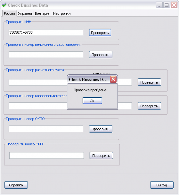Проверка номера общероссийского классификатора предприятий и организаций (ОКПО);