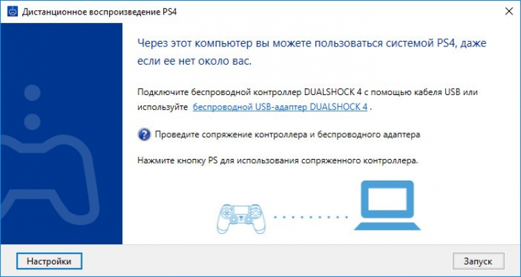 Обратите внимание, что для игры через PS4 Remote Playвам потребуется контроллер DualShock 4 и шнур miniUSB для его подключения к компьютеру. Кроме того, перед запуском программы, необходимо обновить прошивку игровой консоли до актуальной версии.