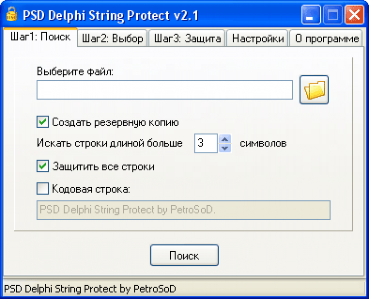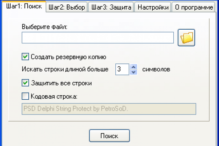PSD Delphi String Protect - это программа осуществляет защиту строк в исходниках Delphi, что после компиляции защитит программу от крэкеров. Строки в исходниках превращаются в зашифрованный массив байт, который расшифровывается по мере необходимости во время работы скомпилированной программы, таким образом, сам исполняемый файл не содержит строк в открытом виде и тем самым сильно противодействует взлому программ путем дизассемблирования и анализа кода программы.