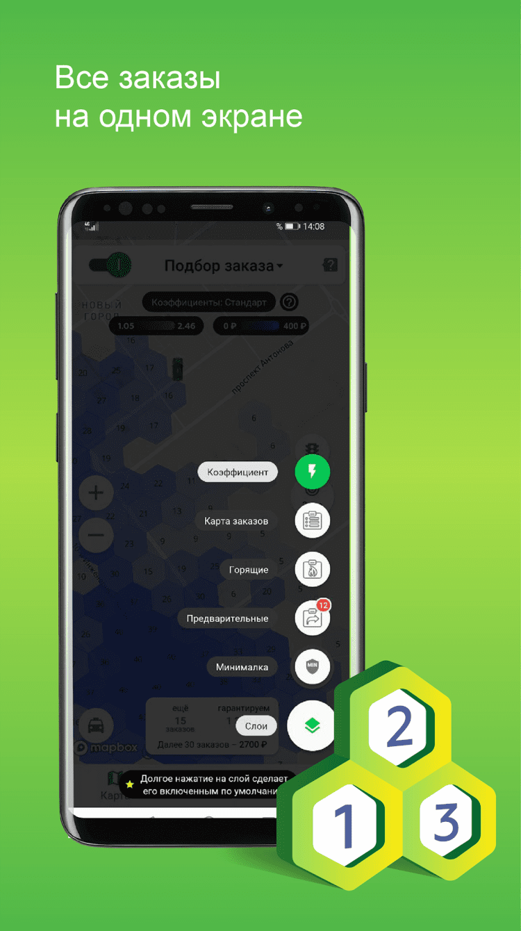 Благодаря этому приложению, зарабатывать за рулем автомобиля станет ещё проще. Здесь вы получите доступ к большому количеству заказов и будете видеть точки начала и завершения поездки, а также свой маршрут, на интерактивной карте. Чтобы обеспечить себе максимально комфортную работу, предусмотрены удобные настройки приема заказов, а также возможность определить комфортную для себя территорию работы. Хотите заработать как можно больше? Тогда воспользуйтесь режимом "Заказ в руку", в котором вы будете получать непрерывный поток заказов. Интересно, что в приложении предусмотрена покупка смен. Эта функция позволяет приобретать смены на выбранный срок и выполнять неограниченное количество заказов без комиссии.