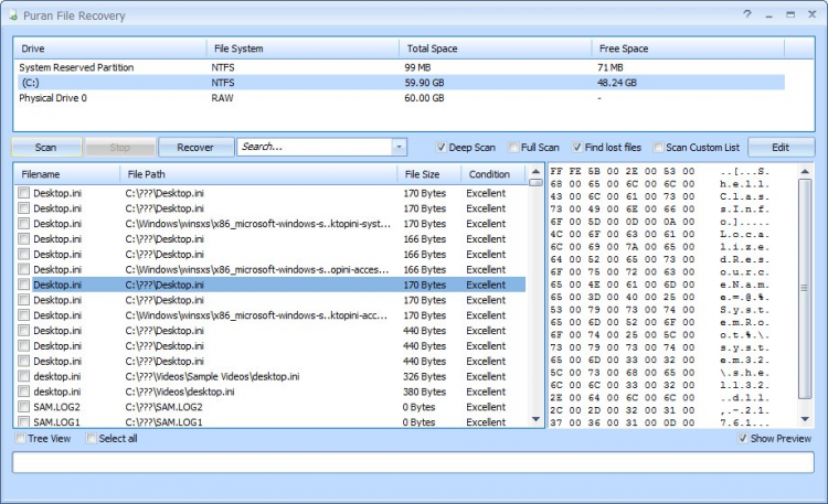 Puran File Recovery Программа для восстановления удаленных файлов или разделов. Есть так же возможность восстановления файлов с отформатированных носителей. Поддерживаются носители с файловой системой FAT12/16/32 или NTFS.