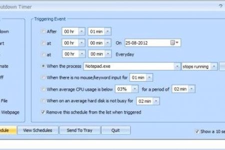 Puran Shutdown Timer Программа для автоматического выключения компьютера. Кроме выключения, позволяет перезагружать компьютера, блокировать вводит с режим сна/гибернации, открывать веб-ссылку или файл. Любое из этих действий может быть выполнено автоматически по расписанию, по таймеру или в назначенное время.