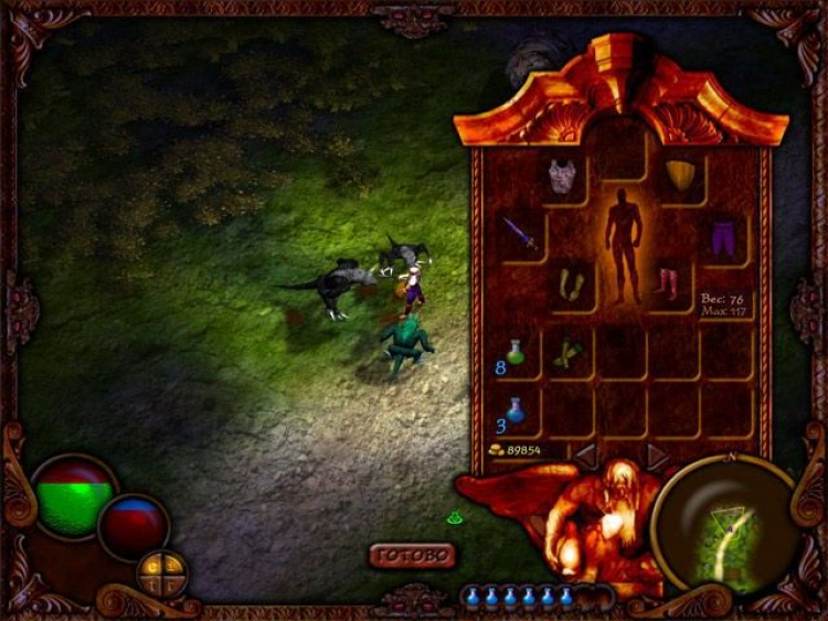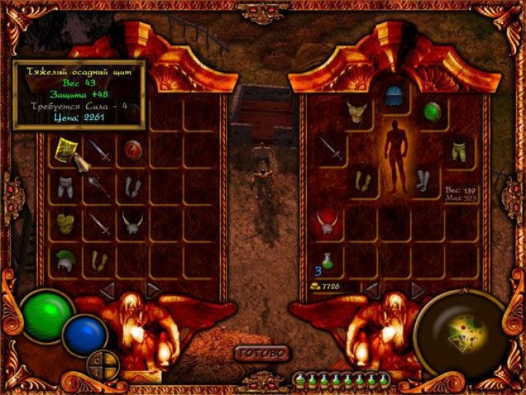Первым делом вам предстоит разобраться с предводителем местных когтистых демонов. Здоровенный вожак обитает на юго-западе, но прежде чем соваться в его логово, стоит подкачать мускулы, а также обзавестись приличными доспехами и оружием. Не стоит тратить свои скудные сбережения на покупку снаряжения у торговца. Этот хитрец продает все втридорога, да и ассортимент в его лавке оставляет желать лучшего. Боевые трофеи окажутся гораздо более практичным выбором. Единственное, что стоит покупать в лавке это зелья здоровья и бодрости, их вам будет очень недоставать в первое время. С каждым поверженным врагом наш герой будет становиться все сильнее и сильнее. Набрав нужное количество единиц опыта, вы сможете увеличивать физические показатели своего героя.