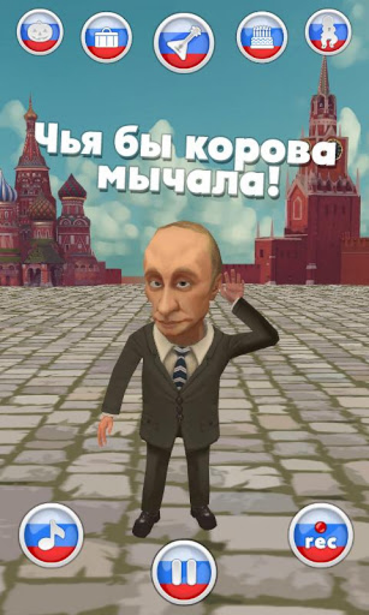Путин Говорит — бесплатное мобильное приложение, опубликованное к юбилею Президента РФ. Что бы вы не сказали, Президент это повторит. Кроме того, он еще напомнит вам его лучшие изречения.