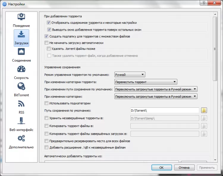 - Продвинутый контроль над торрентами, трекерами и пирами.