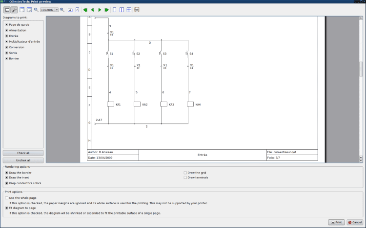 QElectroTech - бесплатная программа для проектирования электросхем. Позволяет создавать схемы, используя большой набор функциональных элементов.