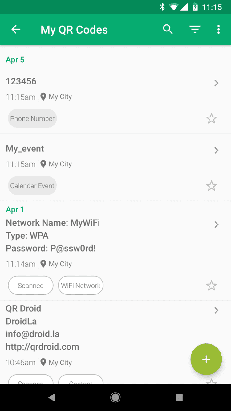 QR Droid позволяет вам использовать камеру вашего аппарата для сканирования QR кодов! Вы можете генерировать коды из контактов прямо на экране аппарата, давать считывать их друзьям, чтобы они могли быстро сохранить нужные данные! И многое другое.