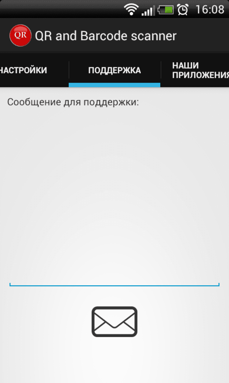 Закладка поддержка позволяет отправить сообщение или задать любой вопрос об использовании приложения по электронной почте разработчикам.