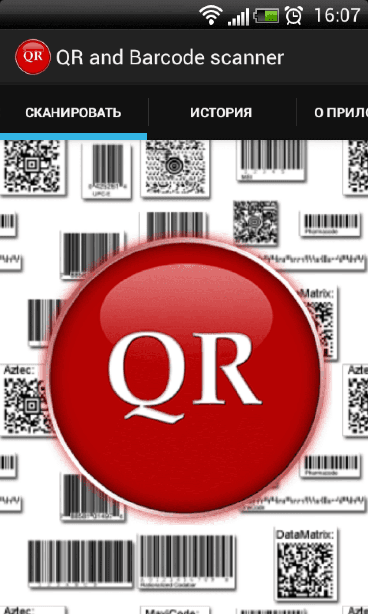 На первой закладке расположена большая кнопка, нажатие на которую открывает сканер. После того как код будет распознан сканером автоматически происходит сканирование.