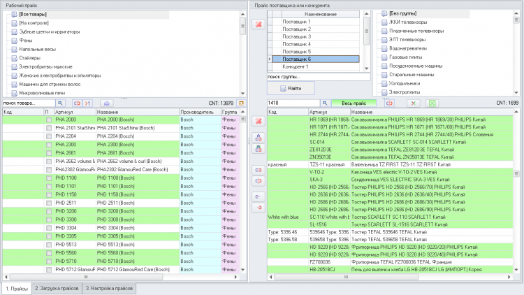 QuadCRM.Price - это программа для прайс-листов, сравнение и анализ прайсов (автоматическое сопоставление товаров). Возможность загрузить неограниченное число прайсов поставщиков и конкурентов и сформировать собственные цены с учетом загруженных прайсов (в бесплатной версии количество товаров в вашем прайсе ограничено - 100 позиций).
