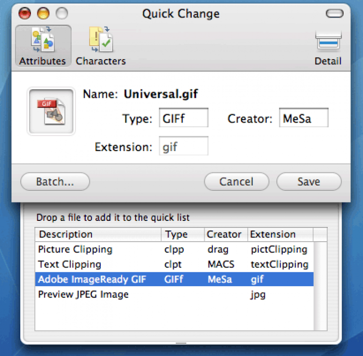 Quick Change Небольшая утилита для смены типа файла, его расширения и создателя. Помимо этого Quick Change позволяет удалять из названия файла некорректные символы. Поддерживается пакетная обработка файлов.