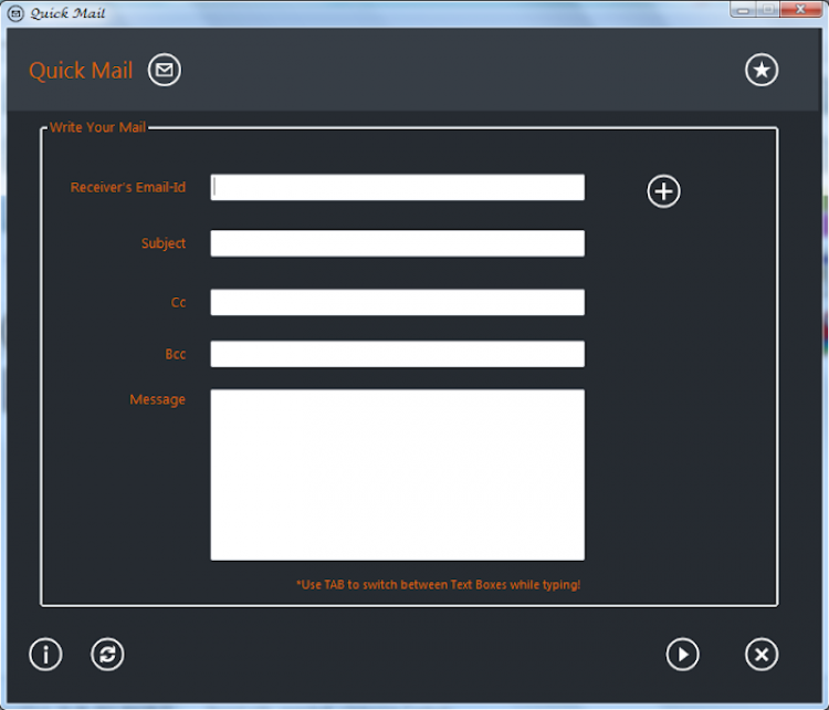 QuickMail - это компактная утилита, с помощью которой можно быстро отправить электронное письмо, не открывая почтовый клиент. С программой очень просто работать, она не требует дополнительных настроек, и обладает понятным интерфейсом. Для того, чтобы отправить письмо нужно просто указать адрес получателя.