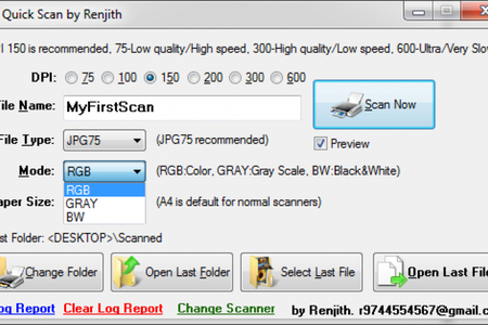 В отличие от других программ, предназначенных для этой цели, данная программа имеет компактный интерфейс, который предоставляет доступ ко всем основным настройками. Тут можно выбрать нужное разрешение (DPI), формат файла, режим (RGB, Grat scale или Black&White) и размер листа.