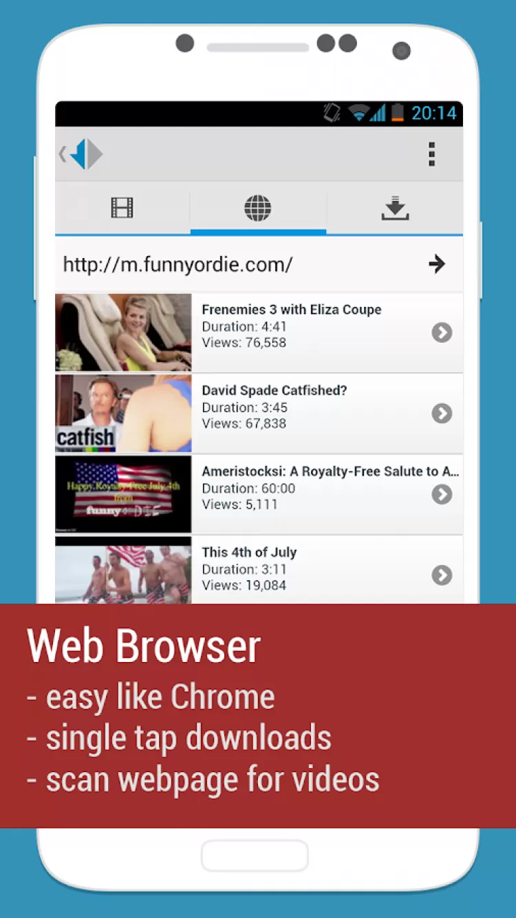QWE - Free Video Download — это программа для скачивания бесплатных легальных видео записей на ваше мобильное устройство. Добавляйте в программу сайты или пользуйтесь сайтами из закладок и скачивайте видео всего в несколько кликов. В программу вошел быстрый и удобный интернет браузер и менеджер закачек с поддержкой скачивания нескольких файлов за раз.